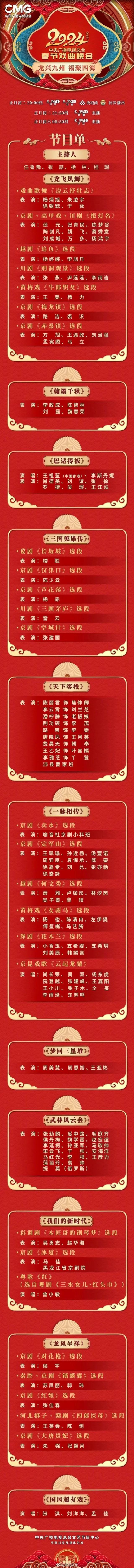 2月11日上午,中央广播电视总台公布晚会节目单。京剧、川剧、越剧、黄梅戏等众多剧种将给观众带来精彩表演,同时展现全国各地戏曲剧种的融合之美。