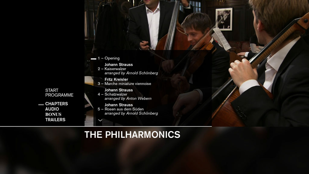 演出曲目以约翰・施特劳斯二世圆舞曲为主,含勋伯格Arnold Schoenberg、贝尔格Alban Berg、韦伯恩Anton Webern等新维也纳乐派音乐家改编版。
