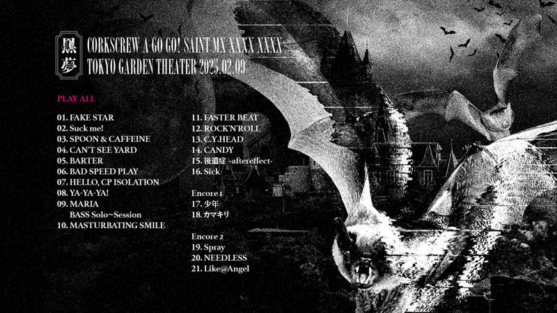 “CORKSCREW A GO GO! SAINT MX XXXX XXXX” to “Zepp TOUR CORKSCREW”