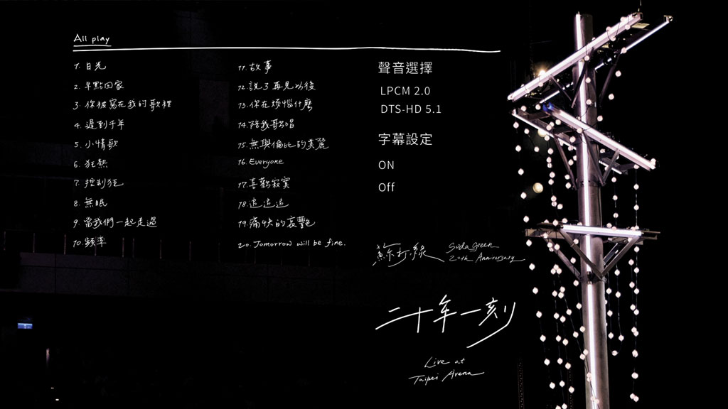 英文片名:Sodagreen 20th Anniversary Live at Taipei Arena 2025
