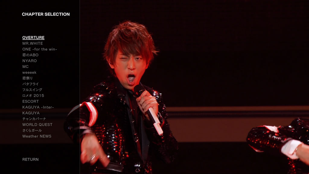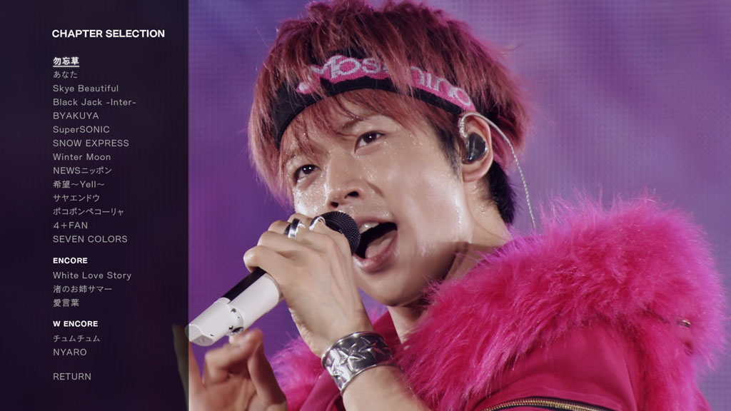 “NEWS LIVE TOUR 2015 White” is the eighth DVD/Blu-ray release by NEWS and features footage of their tour final concert at Tokyo Dome. The concert was released in a Limited and a Regular Edition. The Limited Edition includes an additional MC, the regular edition contains the making of the music clips.