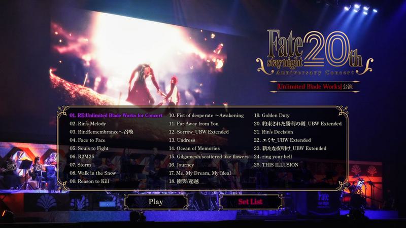 2004年に発売されたゲーム『Fate/stay night』の20周年を記念し、TVアニメ『Fate/stay night [Unlimited Blade Works]』劇場版『Fate/stay night [Heaven’s Feel]』のコンサートを開催。壮大な生演奏と映像により物語を追体験する特別なひとときを、あなたと共に。 [Unlimited Blade Works]公演を収録。 (C)RS