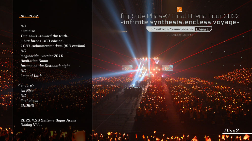 9 fripSide Phase2 Final Arena Tour 2022 -infinite synthesis:endless voyage- 2022.4.23 Saitama Super