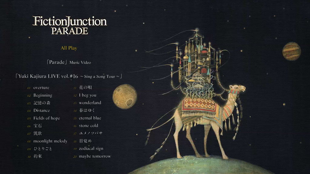 初回限定盤の特典ブルーレイ映像には新曲「Parade」Music Videoのほか、ライブ映像「Yuki Kajiura LIVE vol.#16~Sing a Song Tour~」を収録。
