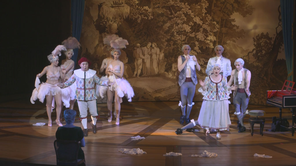 “Capriccio”, subtitled as a conversation piece with music and premiered in Munich in 1942, became the sum of Richard Strauss’ compositional work, his farewell to opera and shows his (ambivalent) insistence on the autonomy of art in times of world war: In a rococo chateau near Paris, the poet Olivier, the composer Flamant and the countess Madeleine negotiate not only their erotic relationship to each other, but also the question – fundamental in opera history,