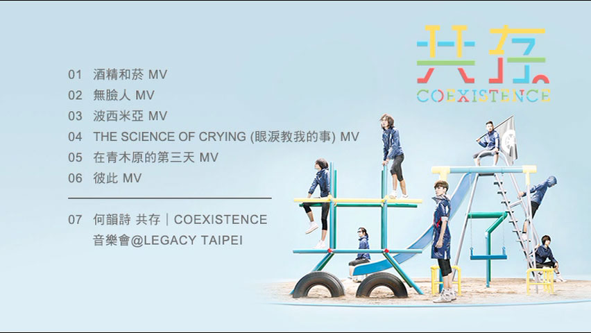 收录: – 6首主打歌MV及台北“共存(Coexistence) 音乐会”@Legacy