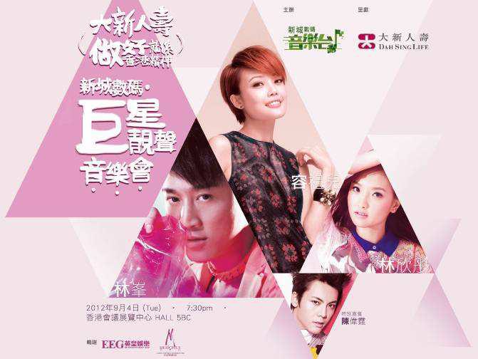 新城数码巨星靓声音乐会由容祖儿、林峯、林欣彤及特别嘉宾陈伟霆联手献唱。