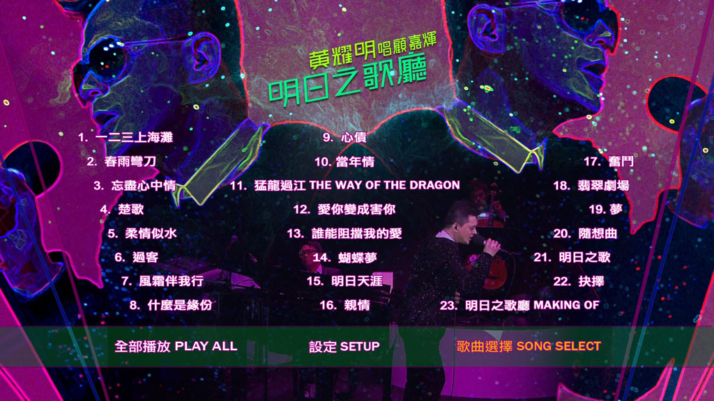 黄耀明继2004年推出《明日之歌》翻唱专辑,向顾嘉煇致敬!2011年10月27日至28日举行一连两场《明日之歌厅——黄耀明唱顾嘉煇》音乐会,演唱顾嘉煇的廿多首名曲如「一二三上海滩」、「过客」、「柔情似水」、「啼笑姻缘」,还有以唱李小龙电影《猛龙过江》英文歌「The Way of the Dragon」等苍海遗珠之作,完场前以「抉择」作结,再次向香港乐坛传奇煇哥致敬。