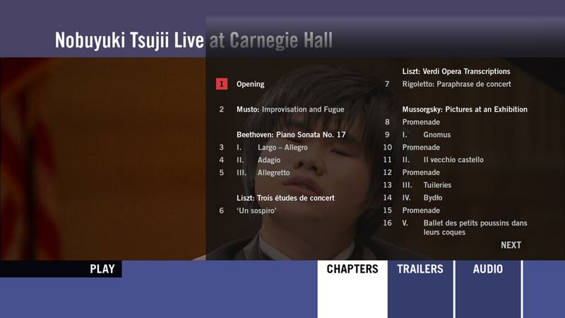 Nobuyuki Tsujii: Live at Carnegie Hall》Following on the heels of his 2009 Van Cliburn International Piano Competition win in 2009, Japanese pianist Nobuyuki Tsujii experienced a dream come true as he appeared on the stage of Carnegie Hall. His brilliant technique and beautiful tone showed through an extraordinary recital contrasting pianistic warhorses with newer pieces, including his own composition in memory of the victims of the Japanese earthquake and tsunami in 2011.