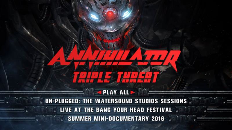 • Canadian thrash/heavy metal veterans ANNIHILATOR have lacerated many senses over the years with their supreme, aggressive metal mastery, and on January 27, 2017, their legion of loyal fans can look forward to a series of fresh sensory experiences as ANNIHILATOR proudly presents “Triple Threat”, a three-disc collection of ANNIHILATOR’s music in a trio of very different scenarios.