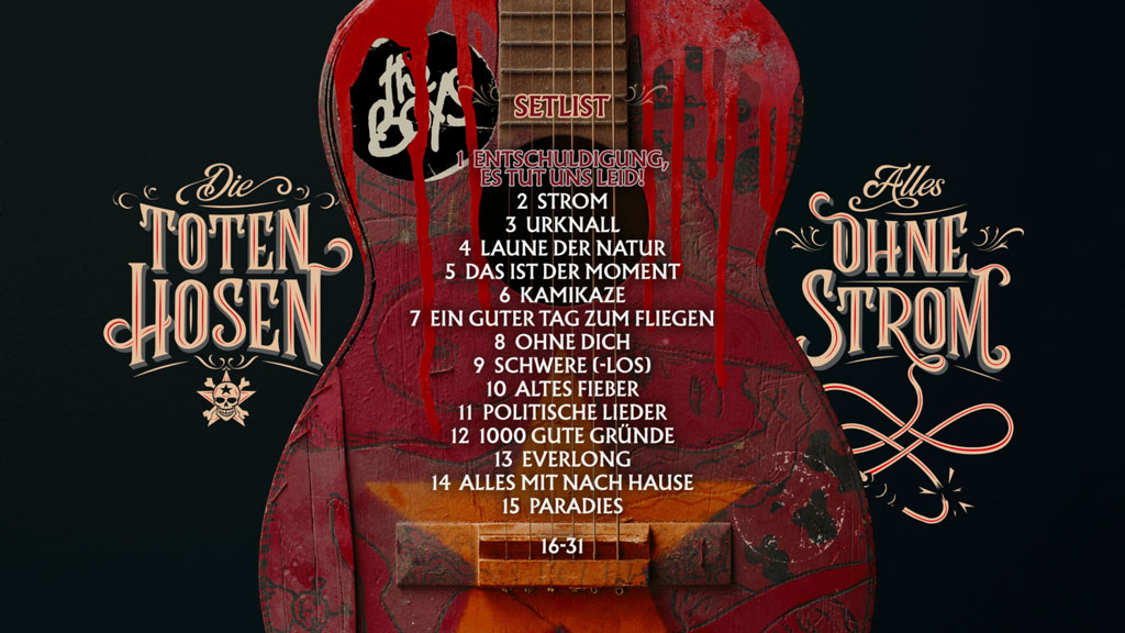 Anderthalb Jahrzehnte und viele Lieder später erscheint nun unter dem Titel „Alles ohne Strom“ ebenfalls ein Akustikalbum und eine DVD/Blu-ray, allerdings ist es eine Weiterentwicklung des alten Konzeptes. Es geht nicht nur um reduzierte, unverstärkte Versionen unserer eigenen Lieder, sondern vielmehr um das Einbringen neuer Instrumente und bislang noch nicht dagewesener Interpretationen des bekannten Materials. Die Toten Hosen wollten von Beginn an eigentlich immer eine Big Band sein, dieser Idee sind wir vielleicht noch nie so nah gekommen wie hier.