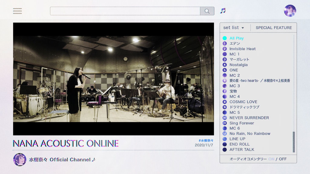 歌手デビュー20周年イヤーである2020年11月7日に開催に配信された水樹奈々初のオンラインライブ〈NANA ACOUSTIC ONLINE〉