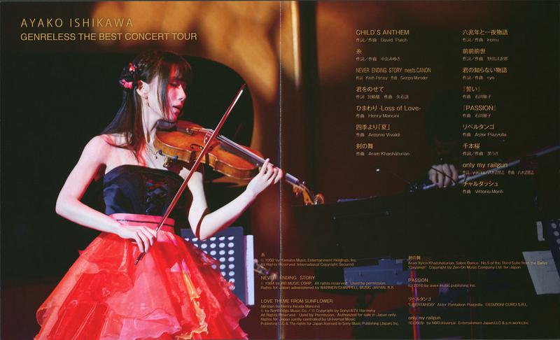 バイオリニスト:石川綾子、初のベストアルバムの発売を記念し、2017年11月18日に第一生命ホールで開催されたコンサート「ジャンルレスTHE BEST コンサートツアー」の模様を収録したBlu-ray。
