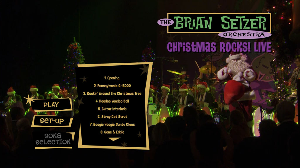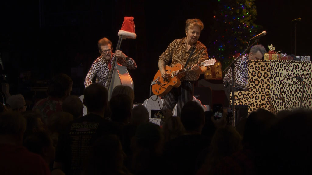 Iconic guitarist, songwriter, vocalist and three-time Grammy award winner Brian Setzer and his 19-piece orchestra are releasing a new concert fil this November on HD Blu-Ray. Christmas Rock! Live was filmed in Santa Barbara at the Granada Theatre and features timeless Christmas classics like, Rockin Around The Christmas Tree , Jingle Bells , and Here Comes Santa Claus as well as hits such as Stray Cat Strut , Jump, Jive An Wail and Rock This Town Track listing: Pennsylvania 6-5000; Rockin Around The Christmas Tree; Hoodoo Voodoo Doll; Stray Cat Strut Boogie Woogie Santa Claus; Gene & Eddie; Angels We Have Heard On High; Jump Jive An Wail; Here Comes Santa Claus; Wichita Lineman; Runnin Down A Dream; The Christmas Song; Rockabilly Boogie; Rocket In My Pocket; Fishnet Stockings; Rock This Town; Nutcracker Suite; Jingle Bells.