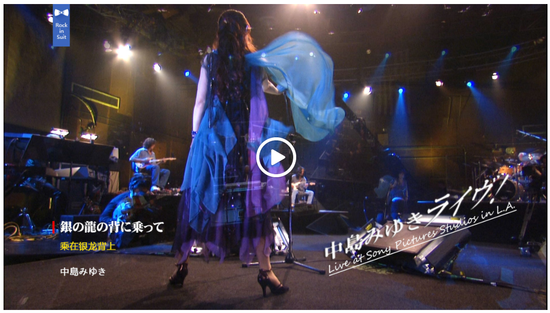 如果说,《中島みゆきライヴ!Live at Sony Pictures Studios in L.A.》是一次演唱会,但是观众却无缘观看,“会”字不好解释。但是,你也不必称之为这是“假”演唱会云云,因为,在中岛美雪研究所,我们就可以看到,这次的演唱并没有放在“音乐公演”的归档里面,而只是放在了“Album”和“Video”类别里面,视频是和夜会等罗列在一起的。其实,美雪在她的专辑制作方面,非常推崇乐手和歌手的“同期录音”手法的(这种方式在西方专辑制作方面很流行),她说这才更像是在做音乐,她的很多专辑都是这么录的。因此在广义上说,她的很多专辑和这张一样都是Live,只不过这张“中島みゆきライヴ!Live at Sony Pictures Studios in L.A.”铺张了一些,专门到了L.A.的Sony Pictures Studios,将整个录音过程拍摄成了视频,还出了DVD和BD。这也可以理解,1975-2005,出道30年嘛,小小庆祝一下。而美雪的庆祝方法就是找几个乐手,找个大屋子(Studio),几十个人吹拉弹唱一番,大伙热闹热闹
