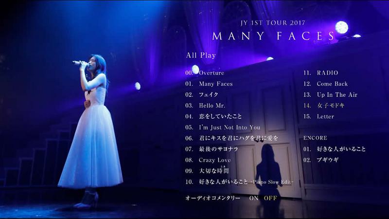 ソロ・アルバム『Many Faces~多面性~』を引っ提げて行われたJYの1stソロ・ツアーより、ファイナル公演の模様をパッケージ化。多種多様な楽曲や、色とりどりの衣装を纏ったJYを余すところなく収録。初回生産限定盤。