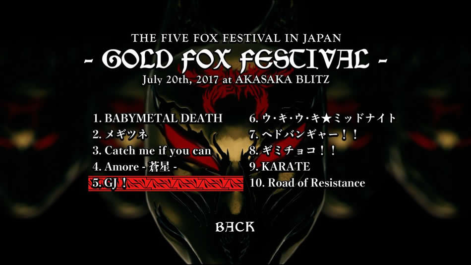 This deluxe set features 5 shows from THE FIVE FOX FESTIVAL IN JAPAN, and last day of BIG FOX FESTIVAL in JAPAN shot in Osaka.BLACK FOX FESTIVAL